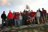 Około godziny 6 pierwszy a zarazem najwyższy szczyt wyprawy został zdobyty, po drodze mijaliśmy osoby które już schodziły ze szczytu a nawet próbowały z niego zjeżdżać na rowerze. Na samym szczycie było również kilka osób śpiących w śpiworach na otwartej przestrzeni. My naszą 22 osobową grupą świętowaliśmy wejście na pierwszy diadem naszej beskidzkiej korony. Były zdjęcia, ciepła herbata, lekki deszcz i... widoki na kolejne szczyty do zdobycia.